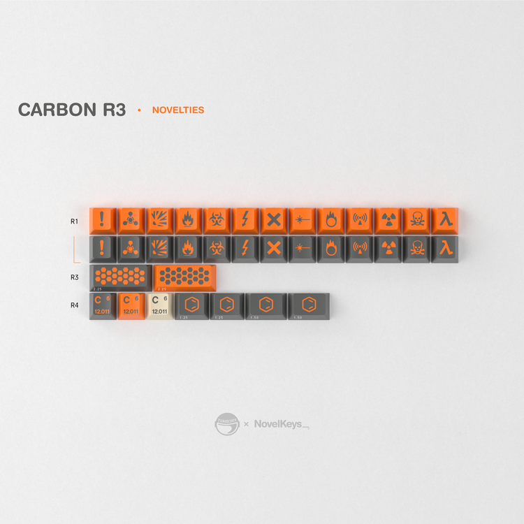 디자이너 Tomb3ry가 2015년에 최초로 공개한 Carbon 키캡 디자인은 산업, 과학 그리고 연구 개발 환경에 어울리게 디자인 되었습니다.